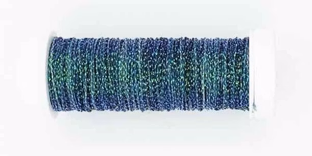 En vacker flätad melerad metallictråd med fin lyster. Går bra att sy med och användas till läggsöm.Passande nål är chenillenål 18, broderinål 110 meter per