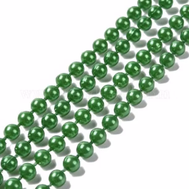 Pärlband av gröna akrylpärlor som är ca 5mm.