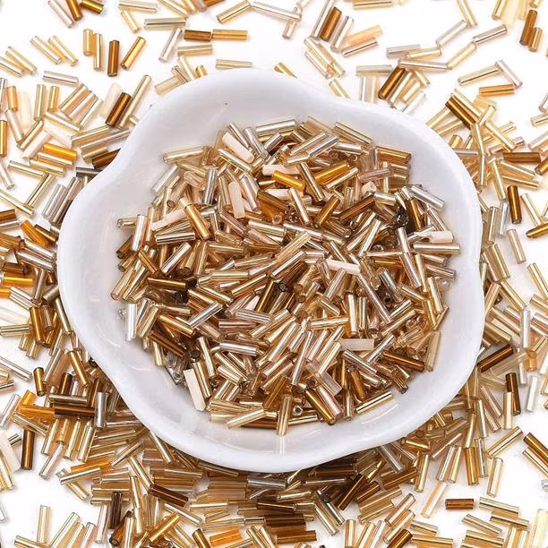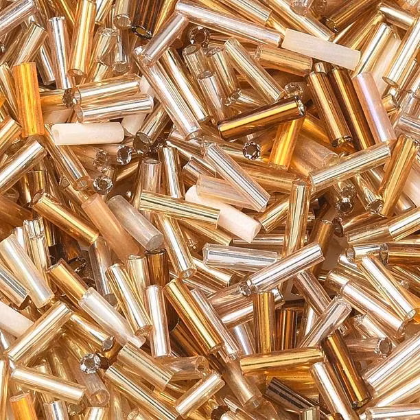 Stavpärlor av glas i en härlig blandning av guldiga toner.