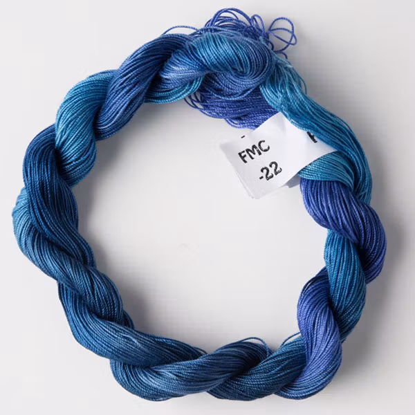 En handfärgad tråd av tunn merceriserad bomull som består av tre hårt tvinnade trådar, ej delbar. Färgerna är starka och med fin lyster, passar till alla fr