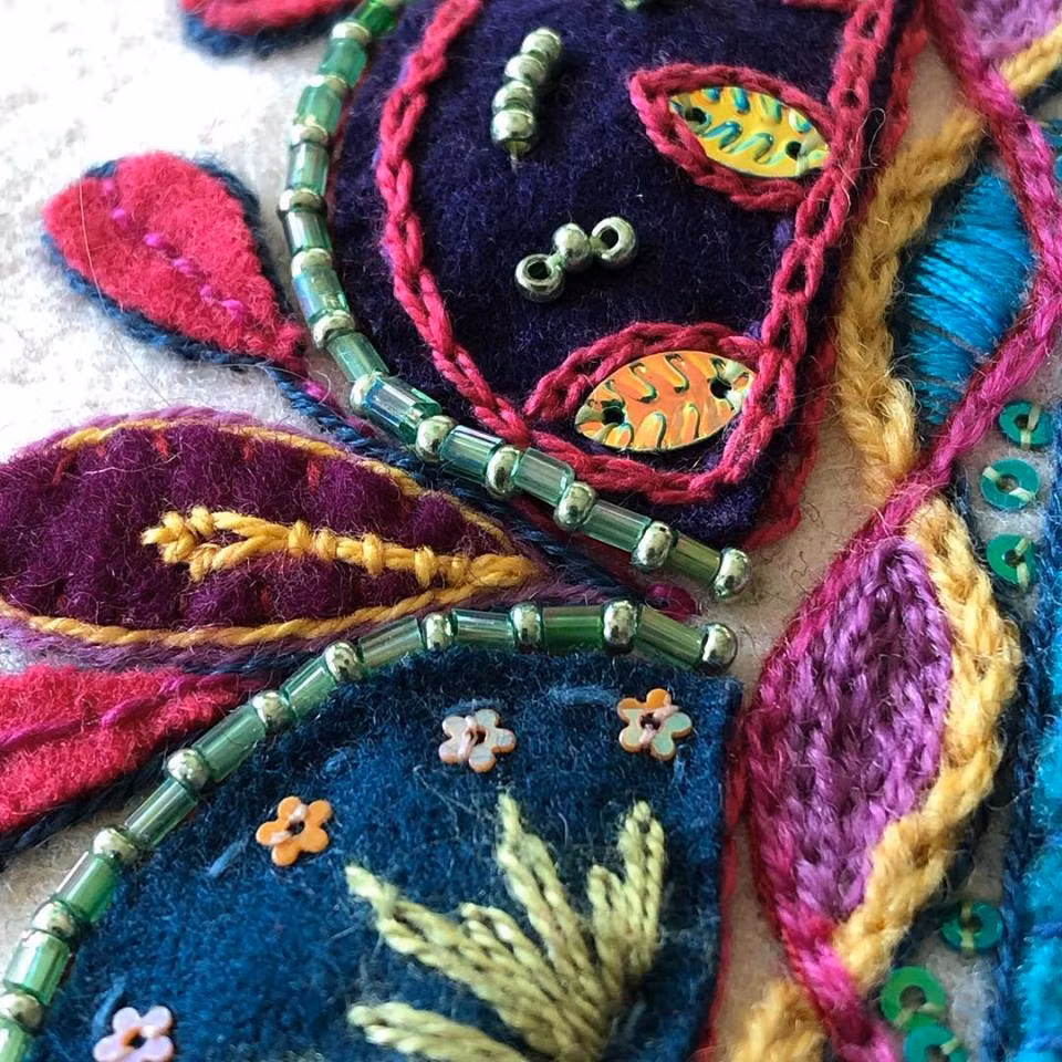 Grundkurs i yllebroderi uynder april och maj 2026. Online via Zoom