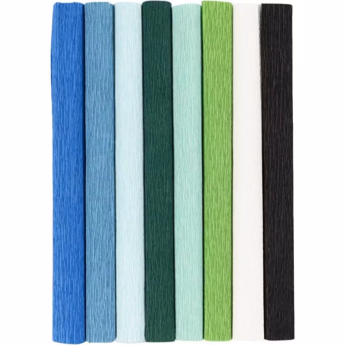 Kräppapper i rosa och lila nyanser för att tex göra pappersblommor. Det finns många olika tekniker att arbeta med, kräppappret kan sträckas, formas och skrynklas på otaliga sätt. På så sätt kan du göra massor av olika blommor, dekorationer m.m. i kräppapper. Använd limpistol med låg temperatur när du limmar så att pappret inte smälter.
