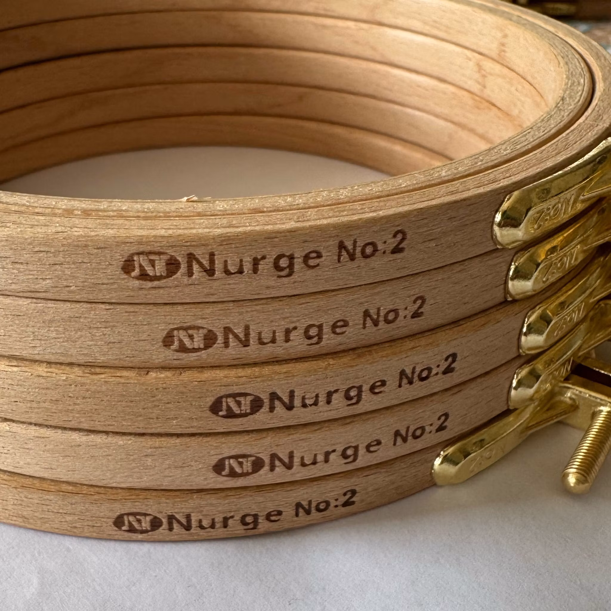 Sybåge håller broderiet sträckt och gör det enklare att brodera. Runda broderiramar gjorda av trä och skruvar av metall. Ett "måste" om du ska sy bottensöm!