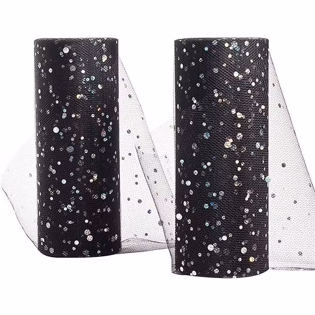 Ett tunt glitternät av tyll med små paljetter. Passar till fritt broderi, textil konst där du vill ha lite textur och glitter. Bredden är 15cm och det säljs p