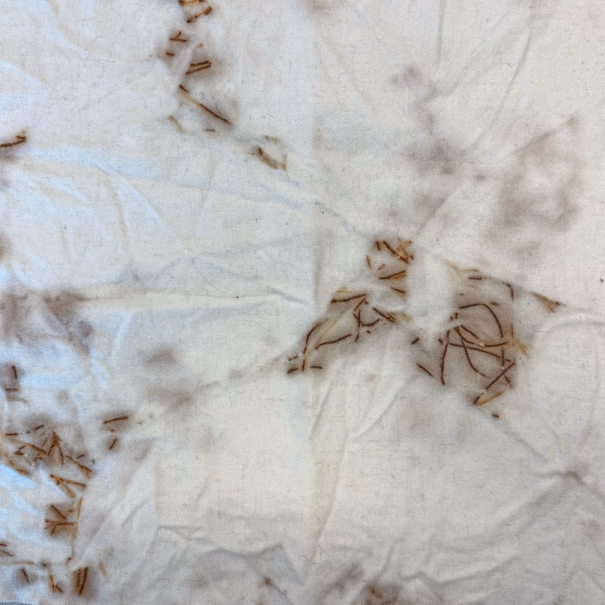 Färgad med rost, betad men tvätt rekommenderas ej.